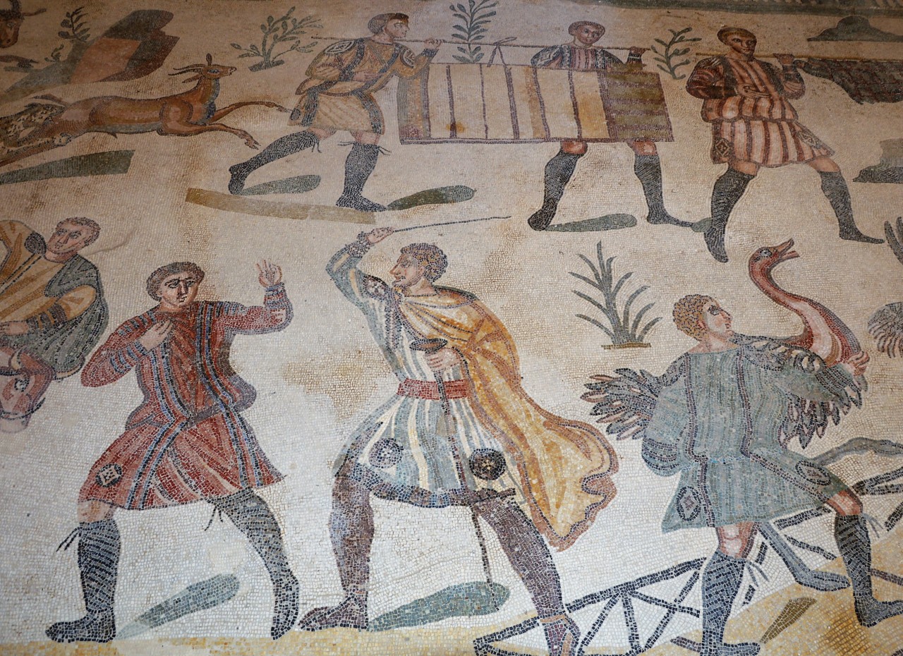 Именно в этом магическом месте сохранилось фундаментальное строение римского периода великое Всемирное наследие ЮНЕСКО. По велению богов мозаики сохранились до наших дней и не перестают удивлять своей монументальностью и гениальностью. Самая загадочная тема мозаик – охота на диких животных, которые заканчивались ритуальным жертвоприношением богине Диане, а в продолжение – роскошный симпозиум в Триклиниуме.