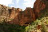 На светлых склонах западной кромки каньона Зайон отчетливо видно, как слой за слоем шло формирование песчаника навахо. Быстрые воды вымывали в камне пещеры, в которых поселилось множество птиц, мелких млекопитающих и насекомых. В некоторых из более крупных пещер археологи обнаружили предметы из древних поселений индейцев пуэбло.